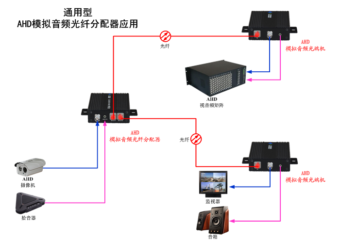 AHD模拟音頻光纖分配器是江蘇新創自主研發(fā)創新,專門爲AHD模拟音頻在單模或多模、塑料光纖上無失真遠距離延長(cháng)、中繼分配或擴展而設計的。通過(guò)使用本分配器,你可以輕松將(jiāng)攝像機、工業照相機或任何視頻源輸出的AHD信号同時清晰、無失真的通過(guò)光纖分配傳輸到遠端現場或本地的多台平闆等離子電視、液晶大屏、顯示器、或投影設備上,從而突破了AHD信号隻能(néng)用短距離電纜傳輸的限制,大大延伸了信号的應…