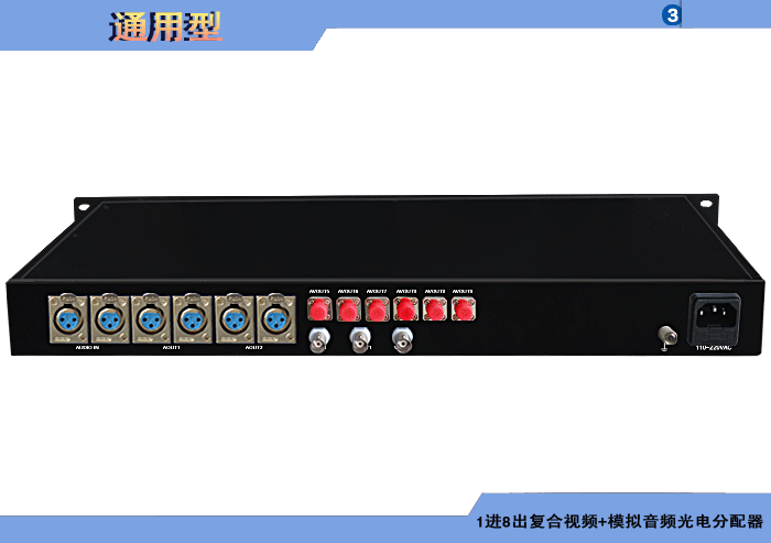 1進(jìn)8出複合視頻模拟音頻光電分配器,卡侬/端子/3.5mm/RCA接口,獨立/冗餘供電,壁挂,通用型 |