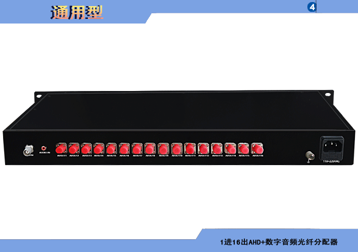 1進(jìn)16出AHD數字音頻光纖分配器,AES/EBU(卡侬/BNC)、S/PDIF(RCA)、光纖數字音頻接口,獨立/冗餘供電,機架,通用型 |