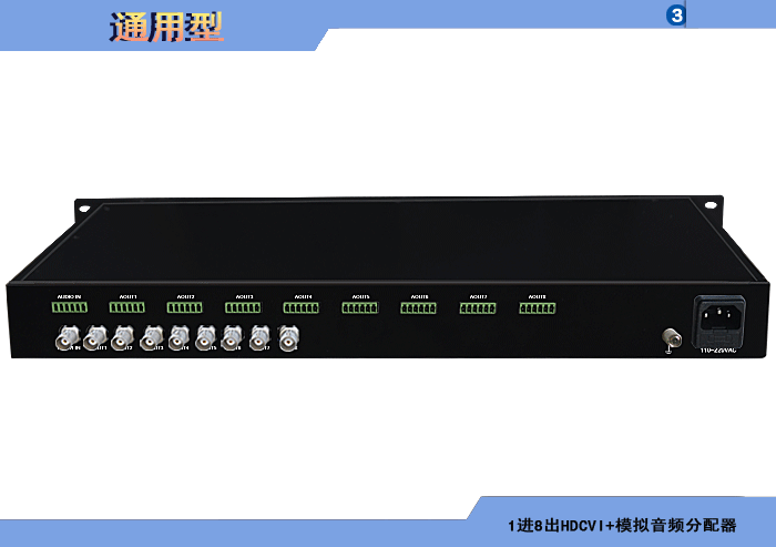 1進(jìn)8出HDCVI模拟音頻分配器,卡侬/端子/3.5mm/RCA接口,獨立/冗餘供電,機架,通用型 |