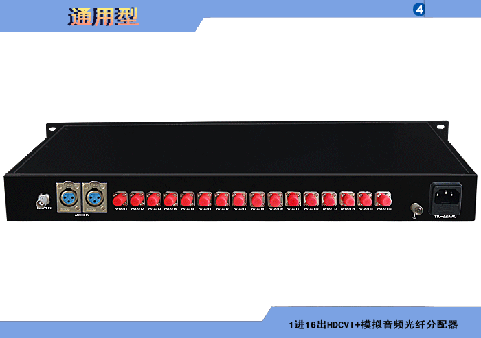 1進(jìn)16出HDCVI模拟音頻光纖分配器,卡侬/端子/3.5mm/RCA接口,獨立/冗餘供電,壁挂,通用型 |