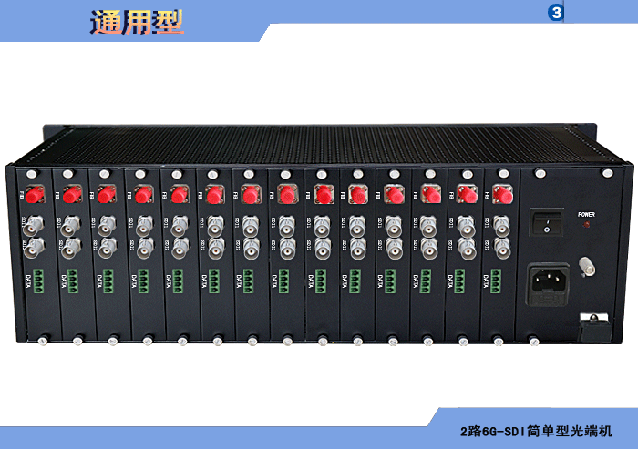 16路6G-SDI簡單型光端機發(fā)射機/接收機,數據可選,單模/多模/塑料,1/2纖,ST/FC/SC/LC/SFP光接口,15/20/25/32dB,獨立/冗餘供電,機架,通用型 |