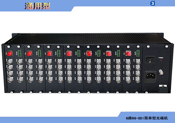 8路6G-SDI簡單型光端機發(fā)射機/接收機,數據可選,單模/多模/塑料,1/2纖,ST/FC/SC/LC/SFP光接口,15/20/25/32dB,獨立/冗餘供電,插卡,通用型 |