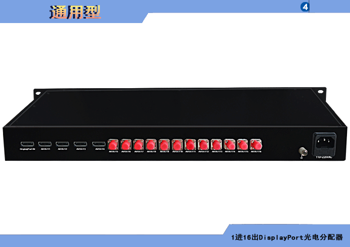 1進(jìn)16出4K DisplayPort光電分配器,内置數字均衡器/抖動去除器可選,獨立/冗餘供電,壁挂,通用型 |