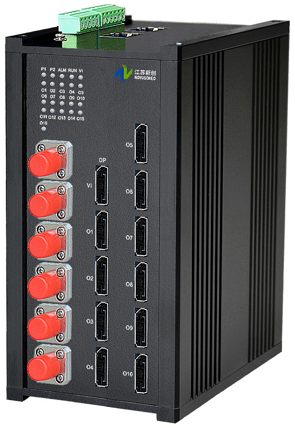 1進(jìn)16出4K DisplayPort光電分配器,内置數字均衡器/抖動去除器可選,獨立/冗餘/總線供電(DC18~36V/5V),導軌,工業型 |
