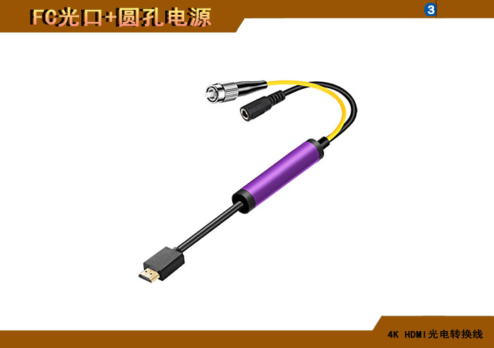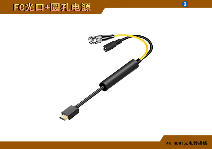 4K HDMI光電轉換線 FC光纖接口+圓孔電源接口 |