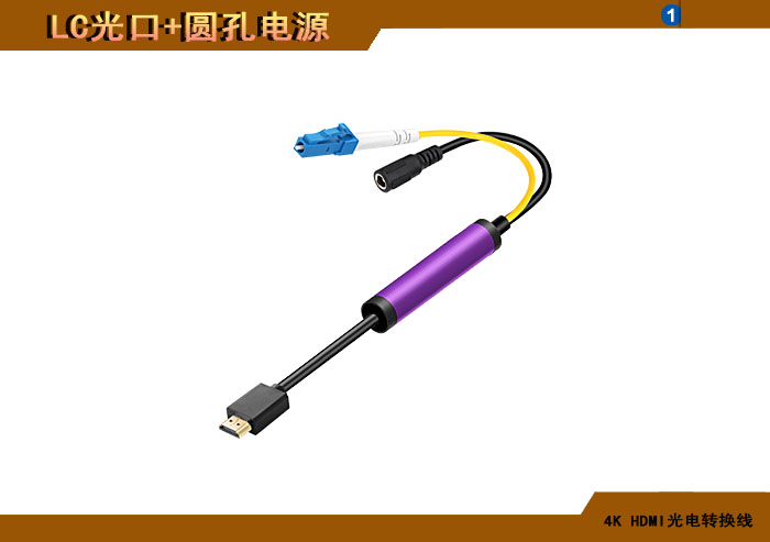4K HDMI光電轉換線 LC光纖接口+圓孔電源接口 |