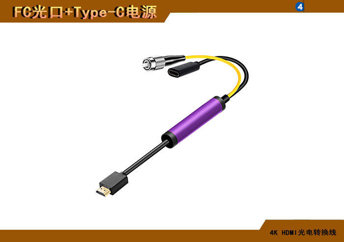 4K HDMI光電轉換線 FC光纖接口+Type-C電源接口 |