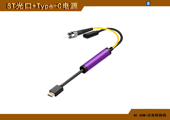 4K HDMI光電轉換線 ST光纖接口+Type-C電源接口 |