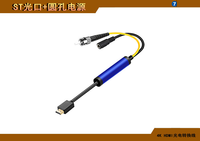 4K HDMI光電轉換線 ST光纖接口+圓孔電源接口 |