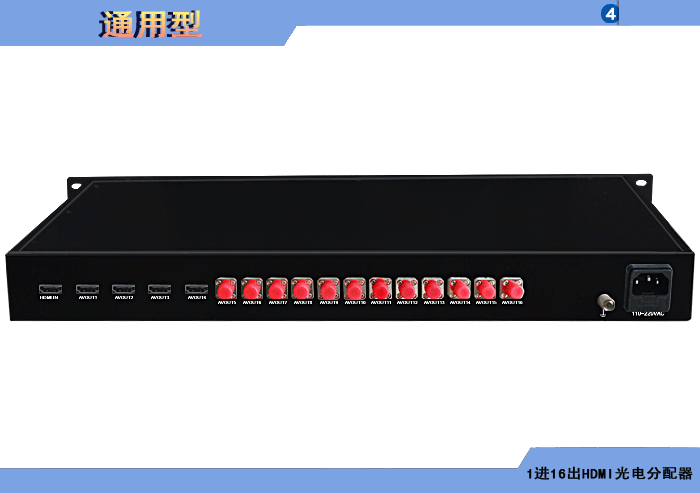 1進(jìn)16出4K HDMI光電分配器,内置數字均衡器/抖動去除器可選,獨立/冗餘供電,機架,通用型 |