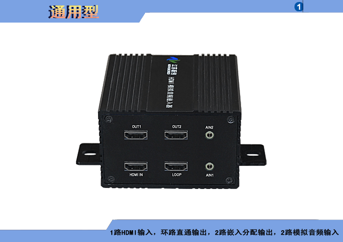 模拟音頻4K HDMI嵌入器,1路4K HDMI輸入,環路直通輸出,路嵌入分配輸出,2路模拟音頻卡侬/端子/3.5mm/RCA接口輸入,獨立/冗餘供電,壁挂,通用型 |
