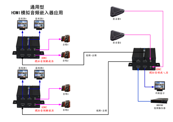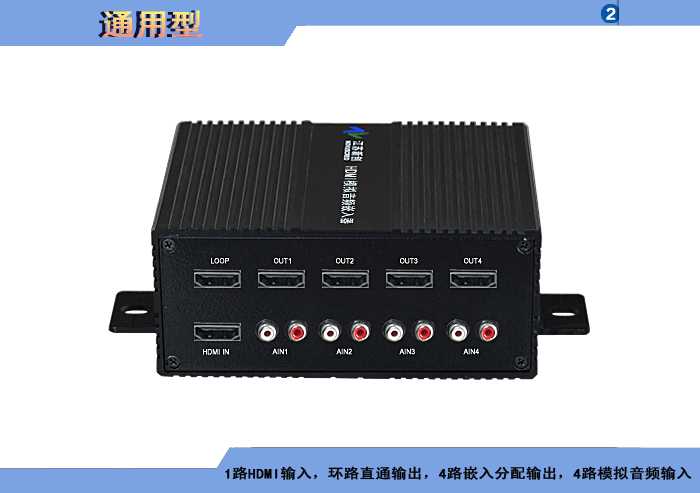 模拟音頻4K HDMI嵌入器,1路4K HDMI輸入,環路直通輸出,2/4/6/8路嵌入分配輸出,1/2路模拟音頻卡侬/端子/3.5mm/RCA接口輸入,獨立/冗餘供電,壁挂/機架,防水型 |