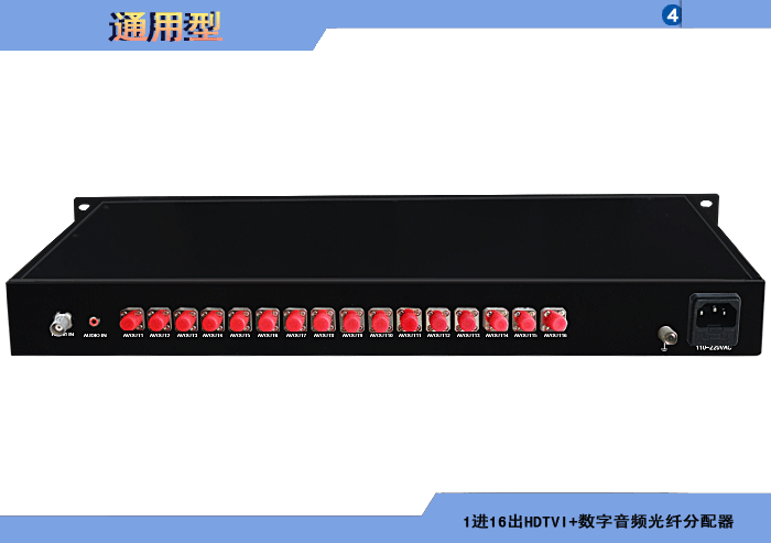 1進(jìn)16出HDTVI數字音頻光纖分配器,AES/EBU(卡侬/BNC)、S/PDIF(RCA)、光纖數字音頻接口,獨立/冗餘供電,機架,通用型 |