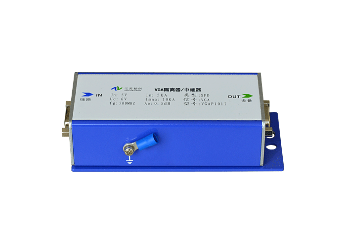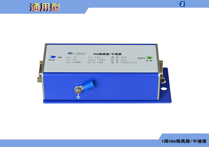 1路VGA隔離器(中繼器),最大隔離電壓2500/5000Vrms,内置5/10KA浪湧保護器可選,獨立/冗餘供電,壁挂,通用型 |