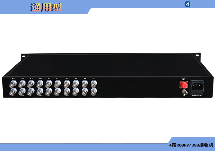RGBHV/USB光端機接收機,4路RGBHV,單模/多模/塑料,1/2纖,ST/FC/SC/LC/SFP光接口,15/20/25/32dB,獨立/冗餘供電,壁挂,通用型 |