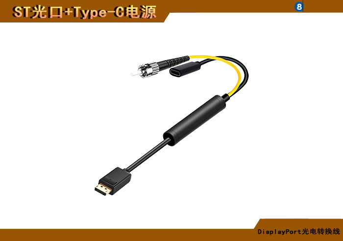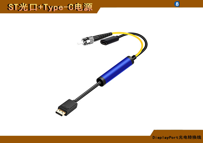 DisplayPort光電轉換線 ST光纖接口+Type-C電源接口 |