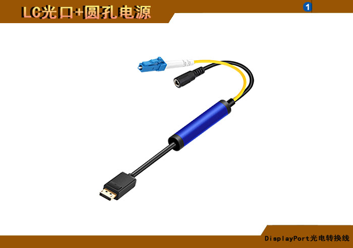 DisplayPort光電轉換線 LC光纖接口+圓孔電源接口 |