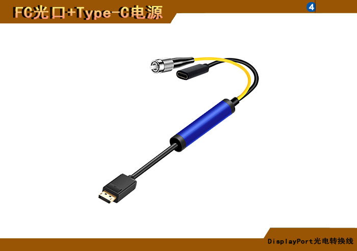 DisplayPort光電轉換線 FC光纖接口+Type-C電源接口 |