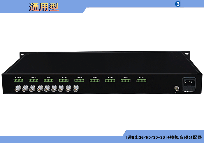 1進(jìn)8出3G/HD/SD-SDI模拟音頻分配器,卡侬/端子/3.5mm/RCA接口,獨立/冗餘供電,機架,通用型 |
