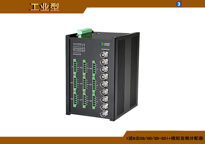1進(jìn)8出3G/HD/SD-SDI模拟音頻分配器,卡侬/端子/3.5mm/RCA接口,獨立/冗餘/總線供電(DC18~36V/5V),導軌,工業型 |