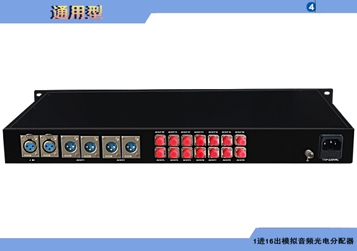 1進(jìn)16出模拟音頻光電分配器,卡侬/工業接線子/3.5mm/RCA接口,平衡/非平衡,立體聲/單聲道(dào),獨立/冗餘供電,機架,通用型 |