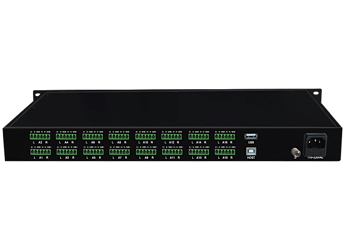 16路模拟音頻/USB端口服務器,卡侬/工業接線子/3.5mm/RCA接口,平衡/非平衡,立體聲/單聲道(dào),1路USB主口輸入、可選多路下遊口輸出,可選内置數字隔離器,最大隔離電壓2500/5000Vrms,可選内置5/10KA浪湧保護器,獨立/冗餘/總線供電(DC18~36V/5V),壁挂/插卡/機架,通用型 |