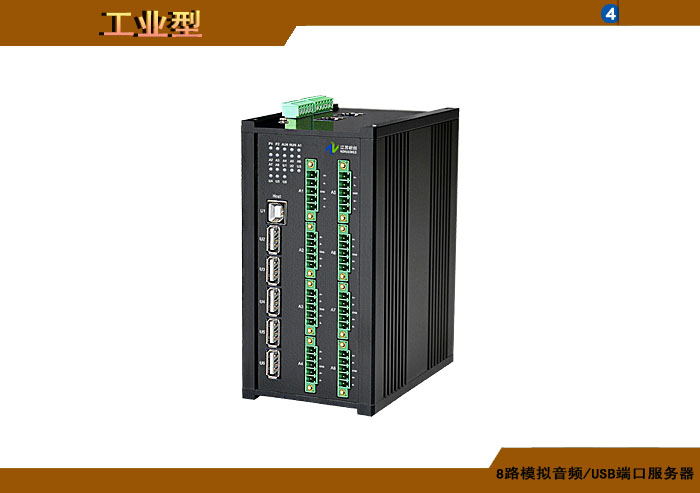 8路模拟音頻/USB端口服務器,卡侬/工業接線子/3.5mm/RCA接口,平衡/非平衡,立體聲/單聲道(dào),1路USB主口輸入、可選多路下遊口輸出,可選内置數字隔離器,最大隔離電壓2500/5000Vrms,可選内置5/10KA浪湧保護器,獨立/冗餘/總線供電(DC18~36V/5V),導軌,工業型 |