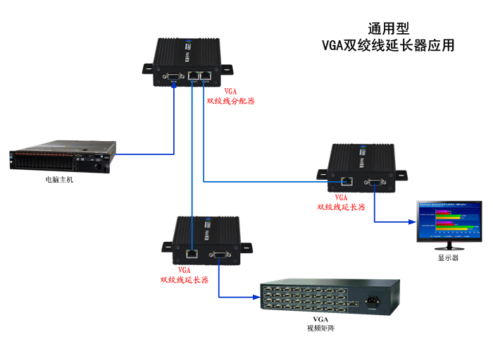 VGA雙絞線延長(cháng)器通用型封裝性價比高,滿足大多數應用場合,性能(néng)質量穩定。