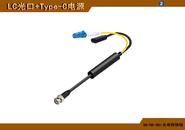 3G/HD-SDI光電轉換線 LC光纖接口+Type-C電源接口 |