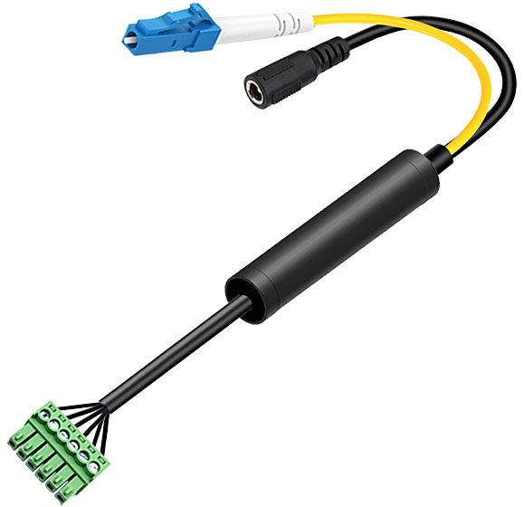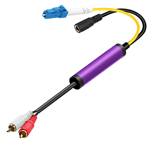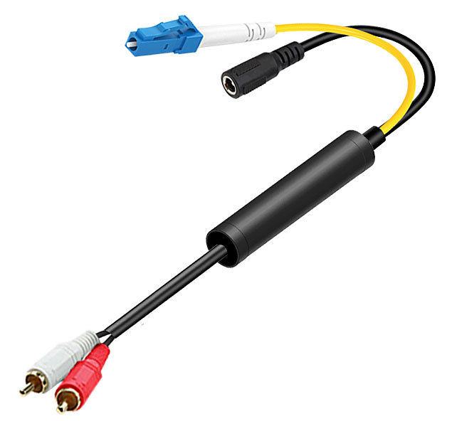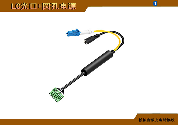模拟音頻端子光電轉換線 LC光纖接口+圓孔電源接口 |