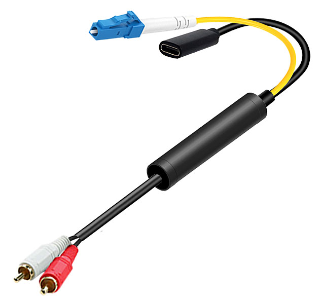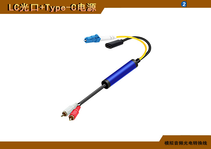 模拟音頻蓮花頭光電轉換線 LC光纖接口+Type-C電源接口 |