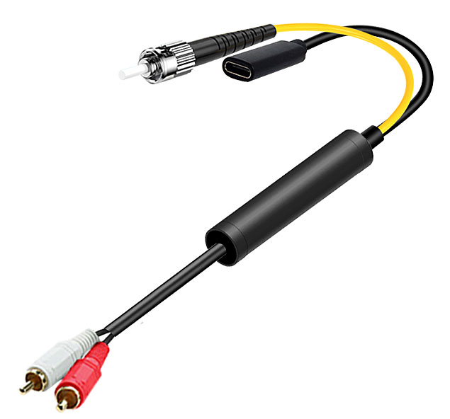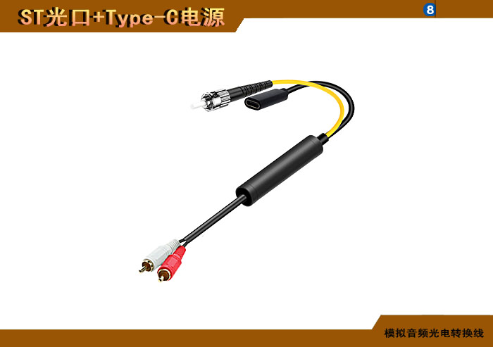 模拟音頻蓮花頭光電轉換線 ST光纖接口+Type-C電源接口 |
