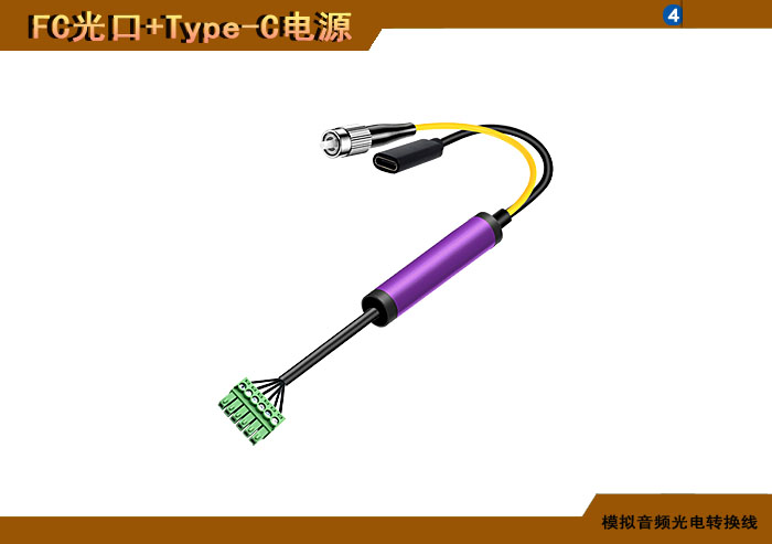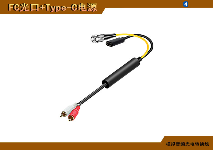 模拟音頻端子光電轉換線 FC光纖接口+Type-C電源接口 |