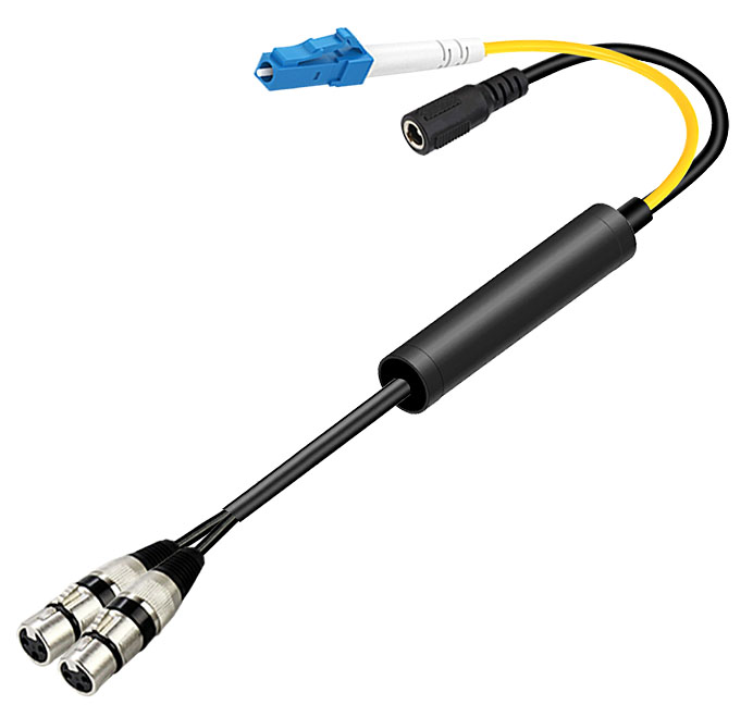 模拟音頻卡侬頭光電轉換線 LC光纖接口+圓孔電源接口 |