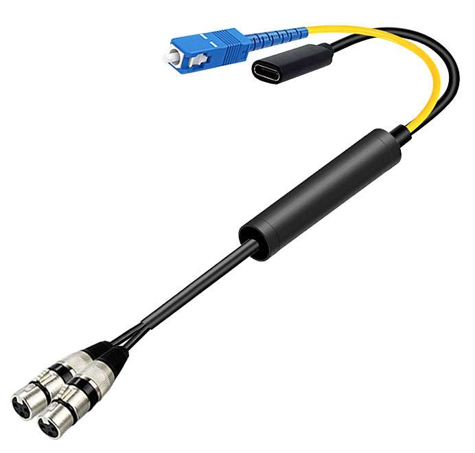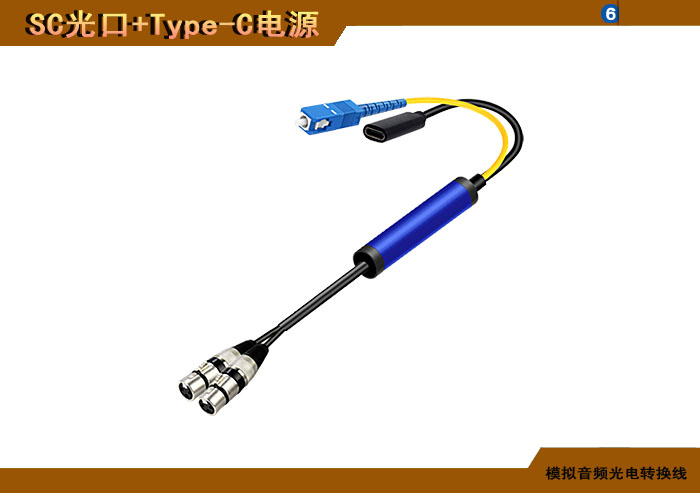 模拟音頻卡侬頭光電轉換線 SC光纖接口+Type-C電源接口 |