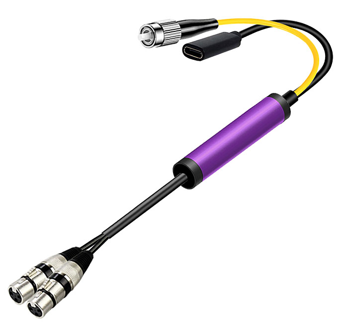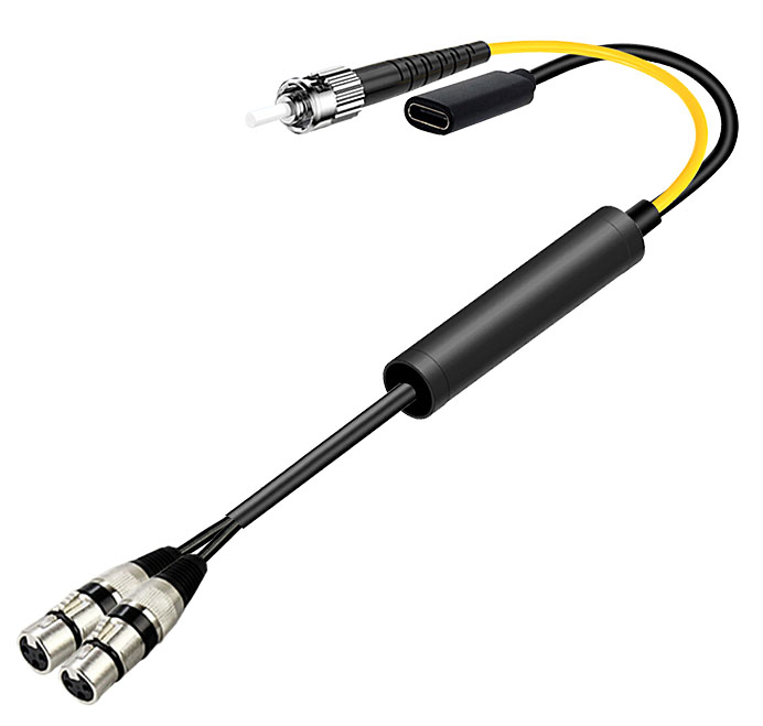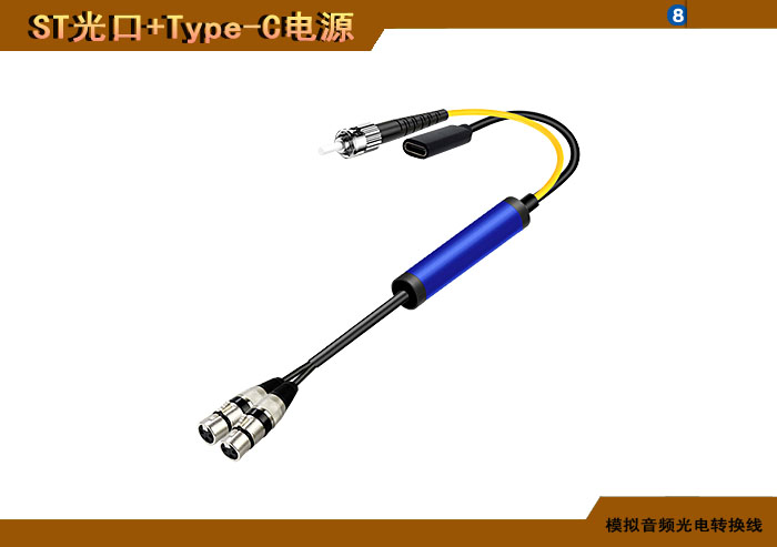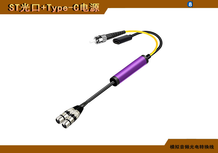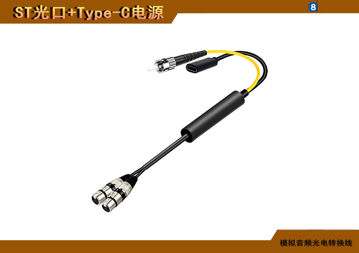 模拟音頻卡侬頭光電轉換線 ST光纖接口+Type-C電源接口 |