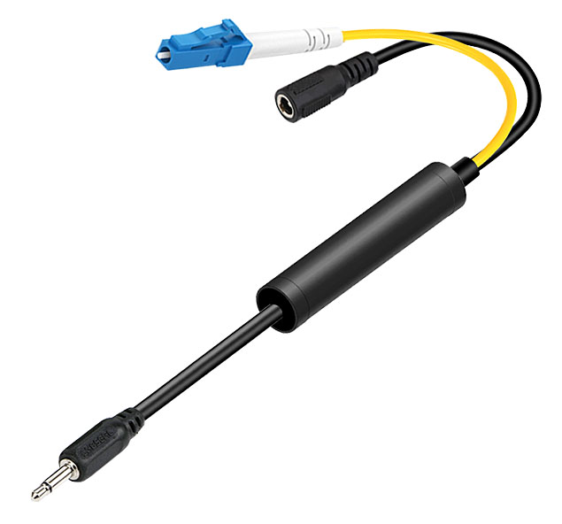 模拟音頻3.5mm頭光電轉換線 LC光纖接口+圓孔電源接口 |