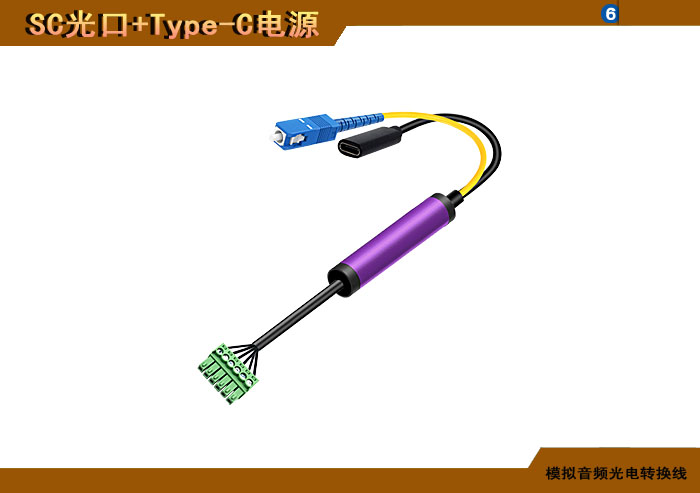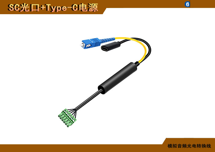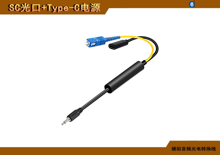 模拟音頻端子光電轉換線 SC光纖接口+Type-C電源接口 |