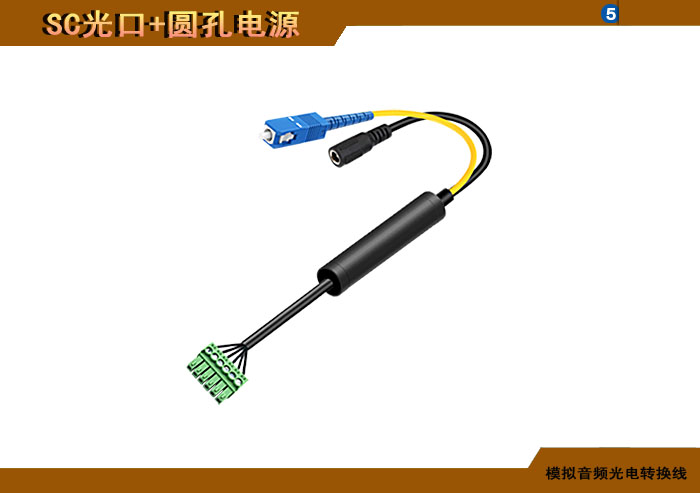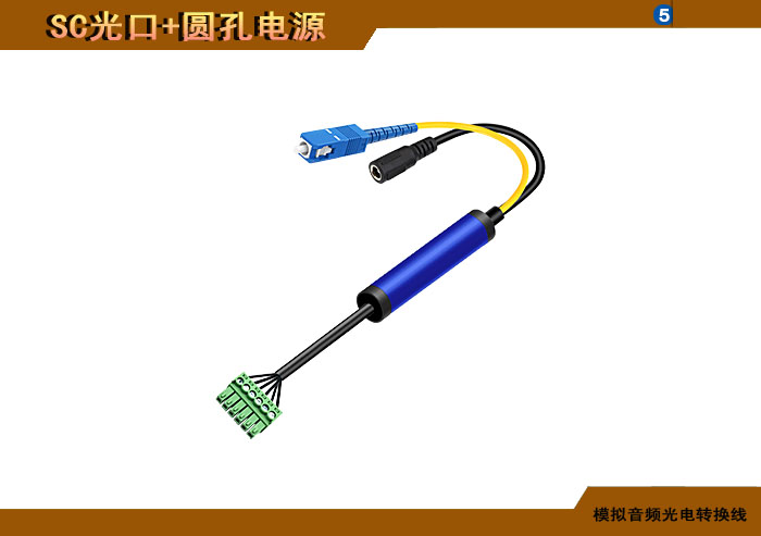 模拟音頻端子光電轉換線 SC光纖接口+圓孔電源接口 |