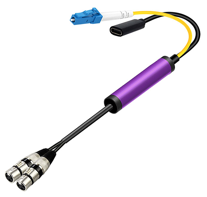 模拟音頻卡侬頭光電轉換線 LC光纖接口+Type-C電源接口 |
