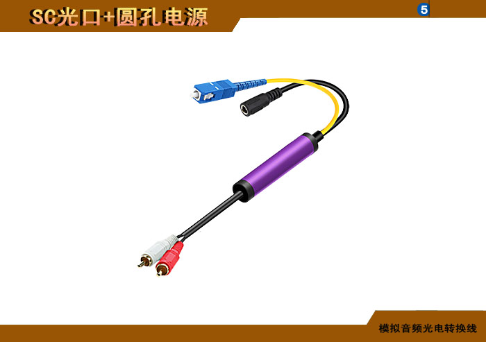 模拟音頻蓮花頭光電轉換線 SC光纖接口+圓孔電源接口 |