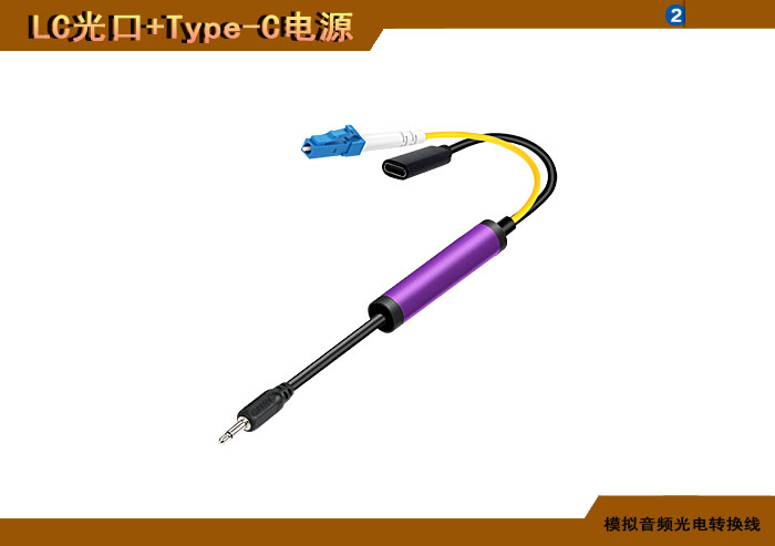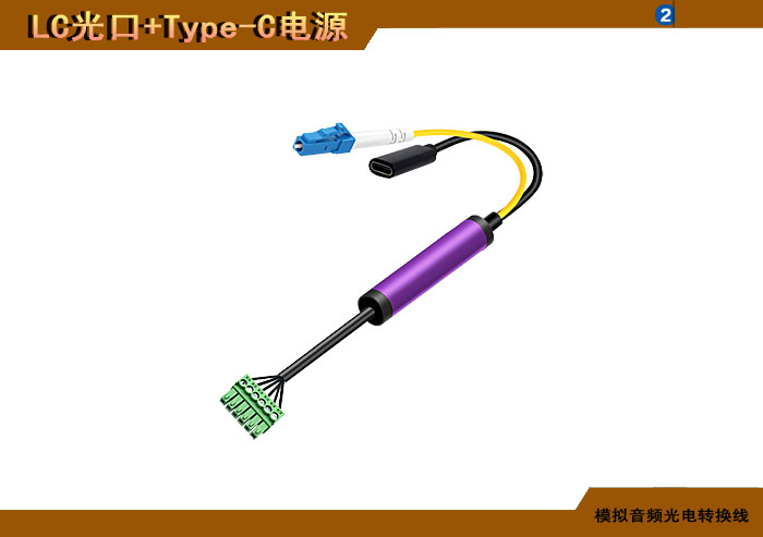 模拟音頻端子光電轉換線 LC光纖接口+Type-C電源接口 |