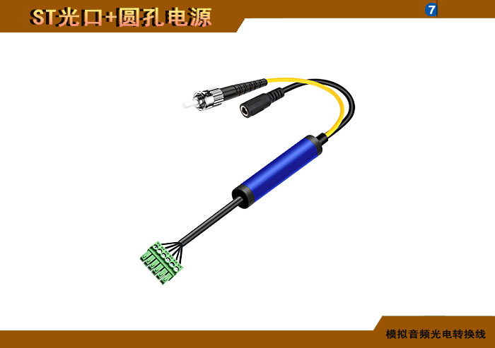 模拟音頻端子光電轉換線 ST光纖接口+圓孔電源接口 |