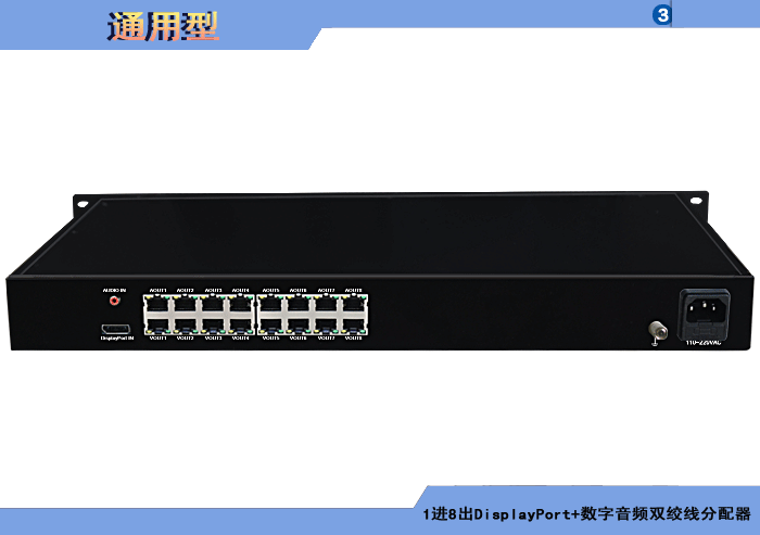 1進(jìn)8出DisplayPort數字音頻雙絞線分配器,内置數字均衡器/抖動去除器可選,AES/EBU(卡侬/BNC)、S/PDIF(RCA)、光纖數字音頻接口,獨立/冗餘供電,機架,通用型 |