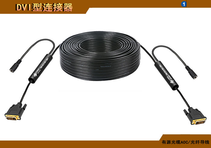 DVI有源光纜AOC/光纖導線支持5V、12V(9~18V) 、24V(18~36V)、48V(36~72V)直流電源輸入設計,也可通過(guò)有源光纜中電纜混合的方式遠距離供電。