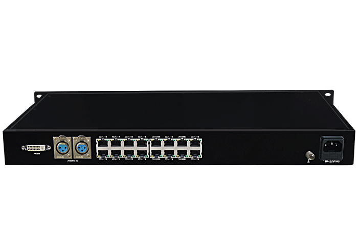 1進(jìn)16出DVI模拟音頻雙絞線分配器,内置數字均衡器/抖動去除器可選,卡侬/端子/3.5mm/RCA接口,獨立/冗餘供電,壁挂,通用型 |