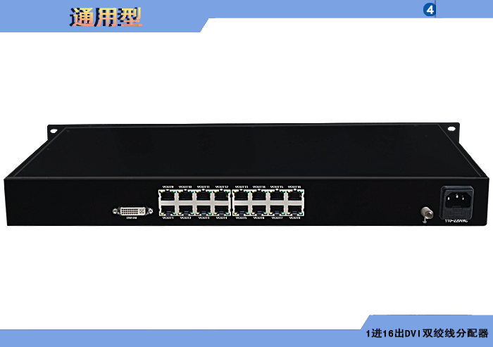 1進(jìn)16出DVI雙絞線分配器,内置數字均衡器/抖動去除器可選,獨立/冗餘供電,壁挂,通用型 |