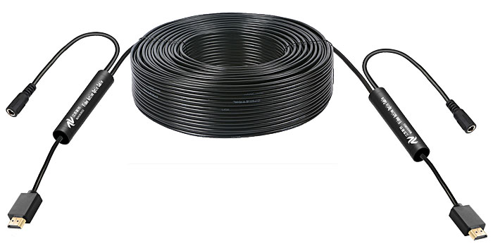 HDMI有源光纜AOC/光纖導線支持5V、12V(9~18V) 、24V(18~36V)、48V(36~72V)直流電源輸入設計,也可通過(guò)有源光纜中電纜混合的方式遠距離供電。