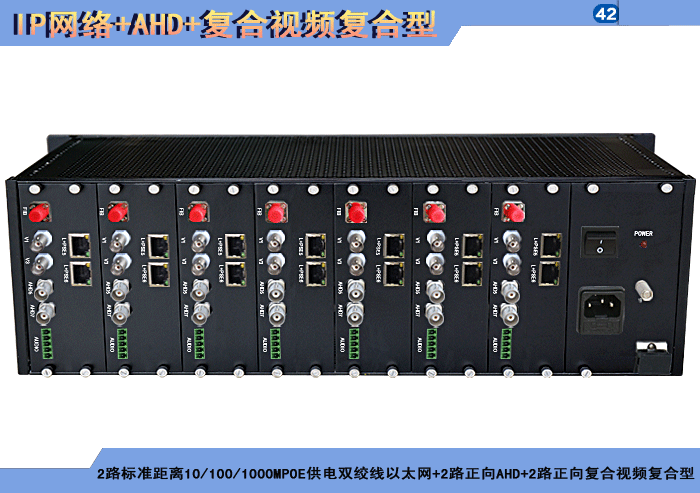 1/2/4路特長(cháng)距離10/100MPOE供電雙絞線以太網+1/2/4路正向(xiàng)AHD+1/2/4路正向(xiàng)複合視頻複合信号型光端機發(fā)射機/接收機,複合信号可選,單模/多模/塑料,1/2纖,ST/FC/SC/LC/SFP光接口,15/20/25/32dB,獨立/冗餘供電,插卡,通用型 |